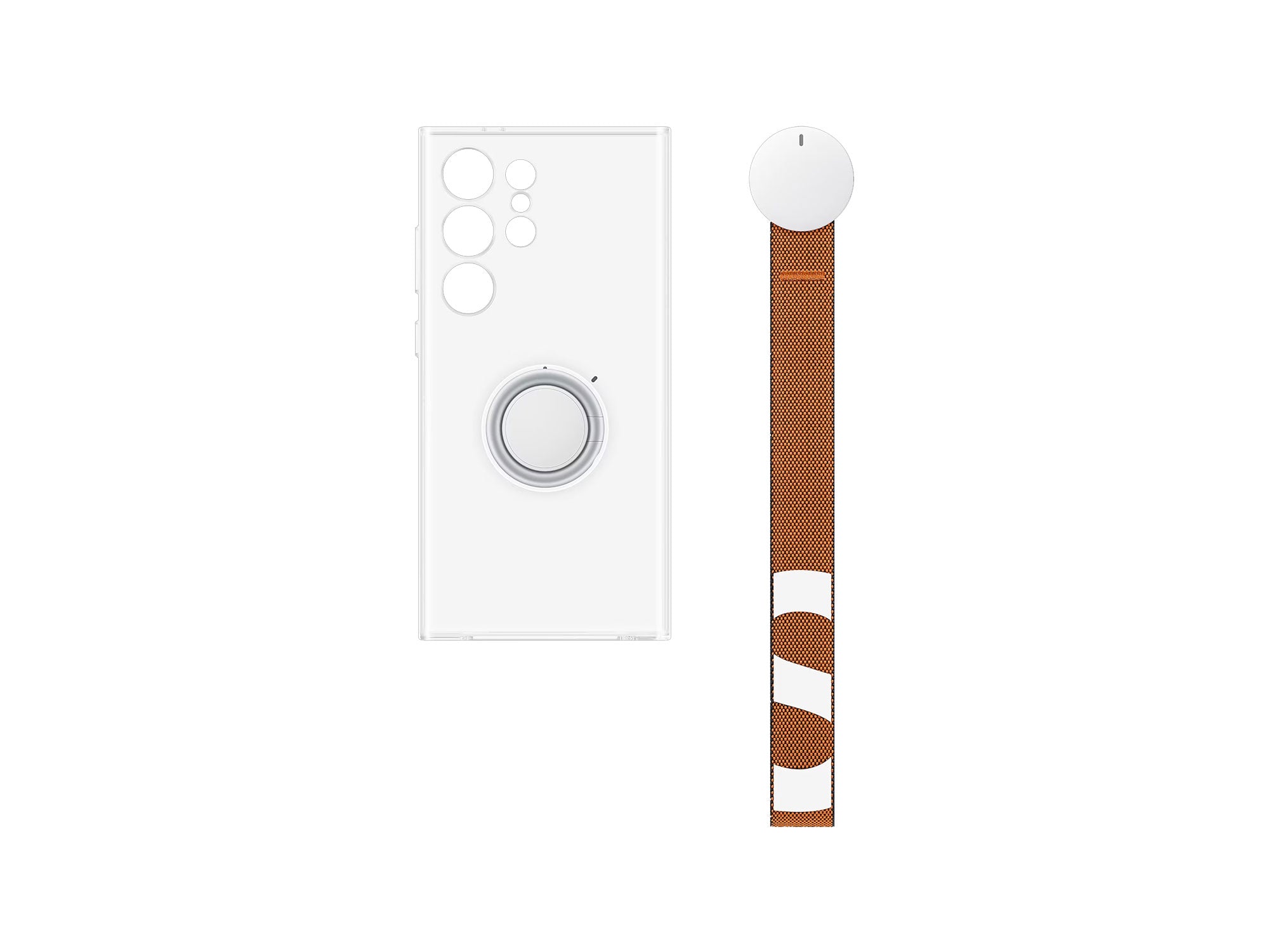 In box items: Clear Gadget Case with Grip+Strap.