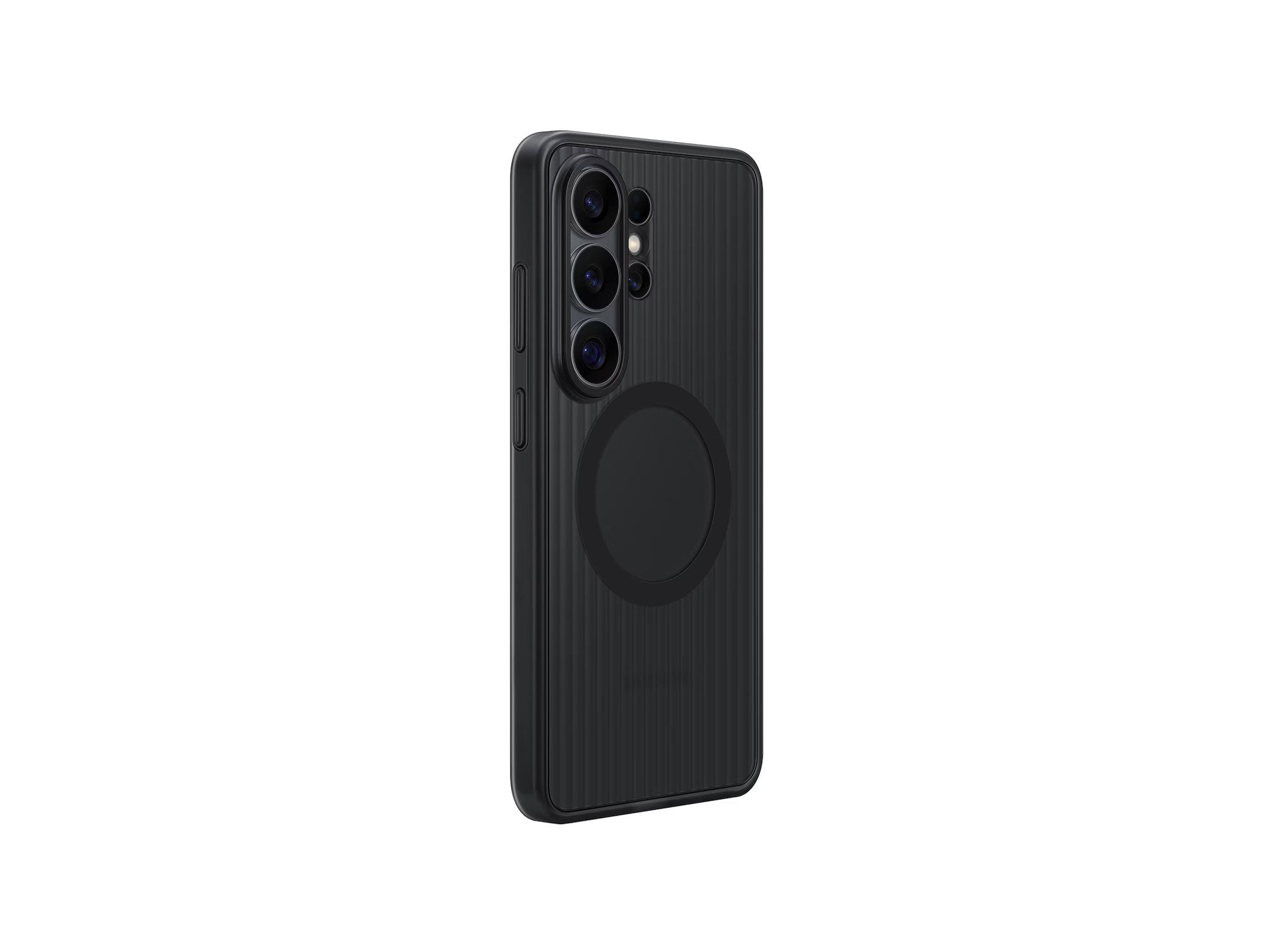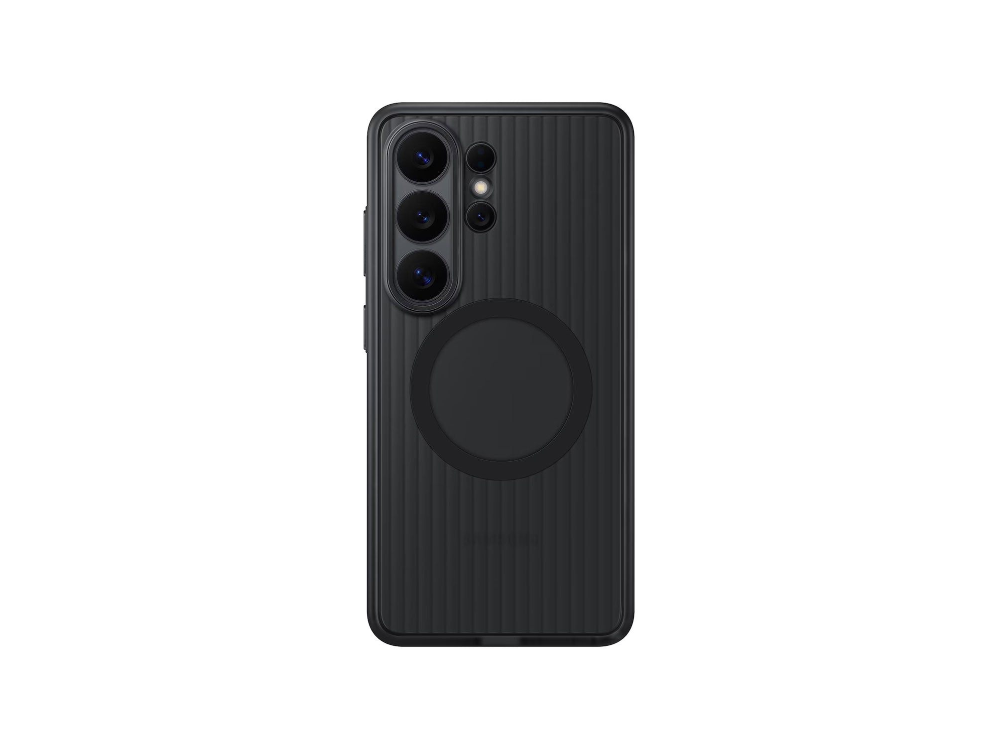 The Rugged Magnet Case absorbs shock from drops and resists scratches and impact. Tested to 5x the Military Grade Standard drop test (MIL-STD-810H), it's built for repeated impact resistance. It passed 5 consecutive tests of 26 drops from 1.22 m, covering all faces, edges and corners for all-around protection. Raised edges protect the screen and camera, while grooved sides enhance grip. A padded inner layer adds cushioning for comfort in use. Built-in magnets help align your Galaxy S26 Ultra for fast wireless charging and allow easy attachment of compatible magnetic accessories.