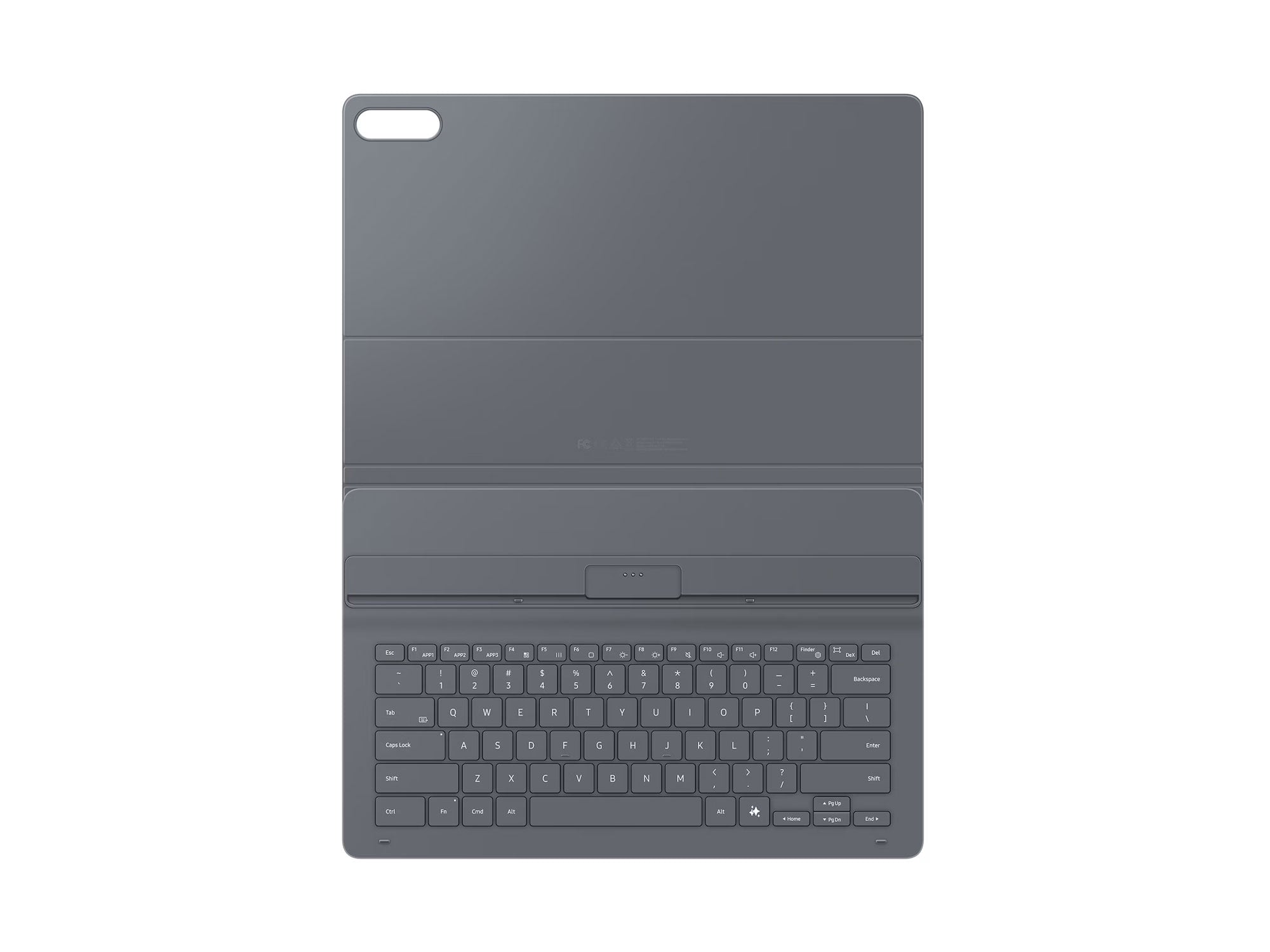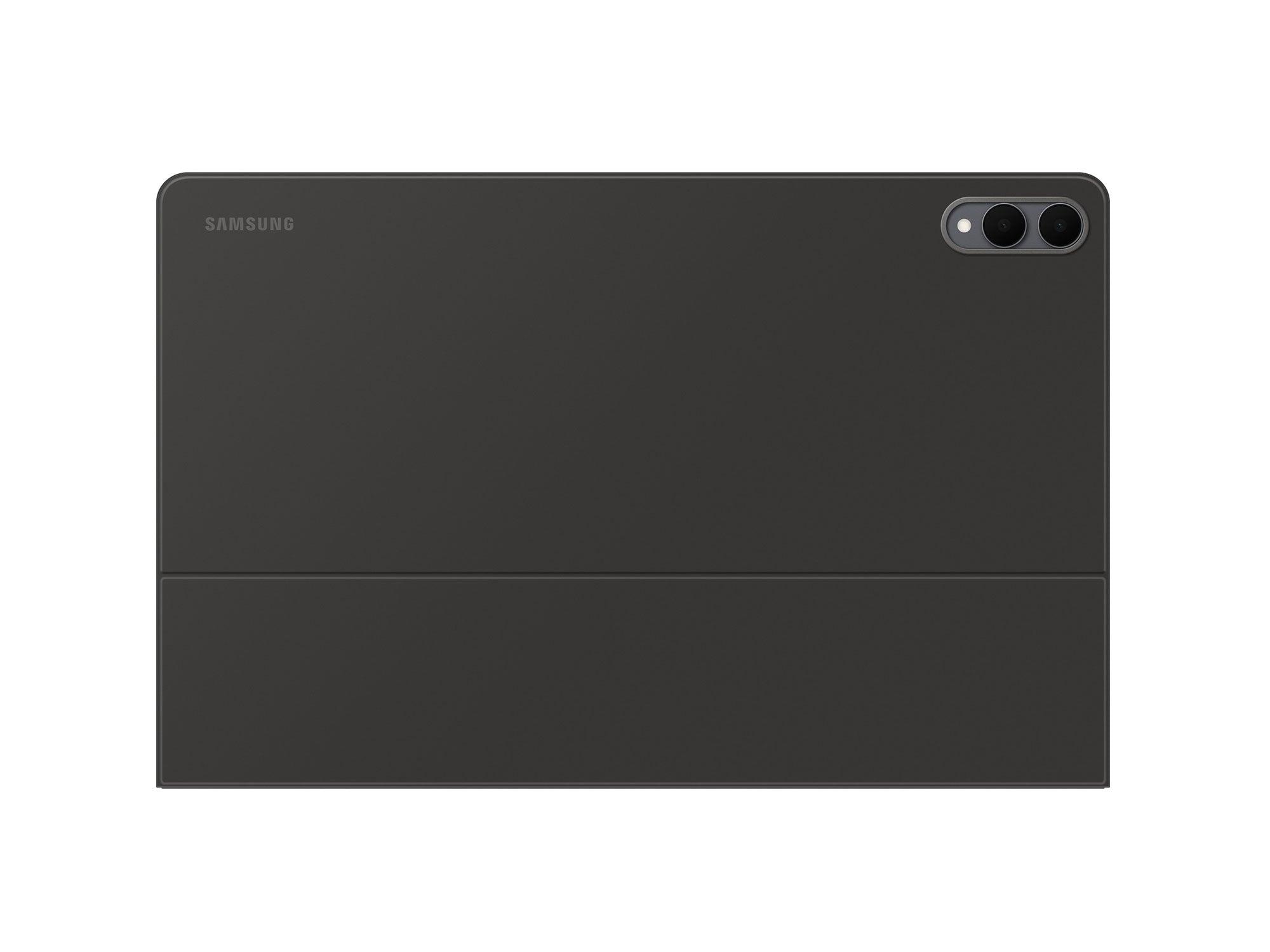 Book Cover Keyboard Slim features a metal accent around the camera for a premium touch. Its black exterior pairs with a soft gray interior, creating a refined two-tone finish that gives a polished, high-end look.