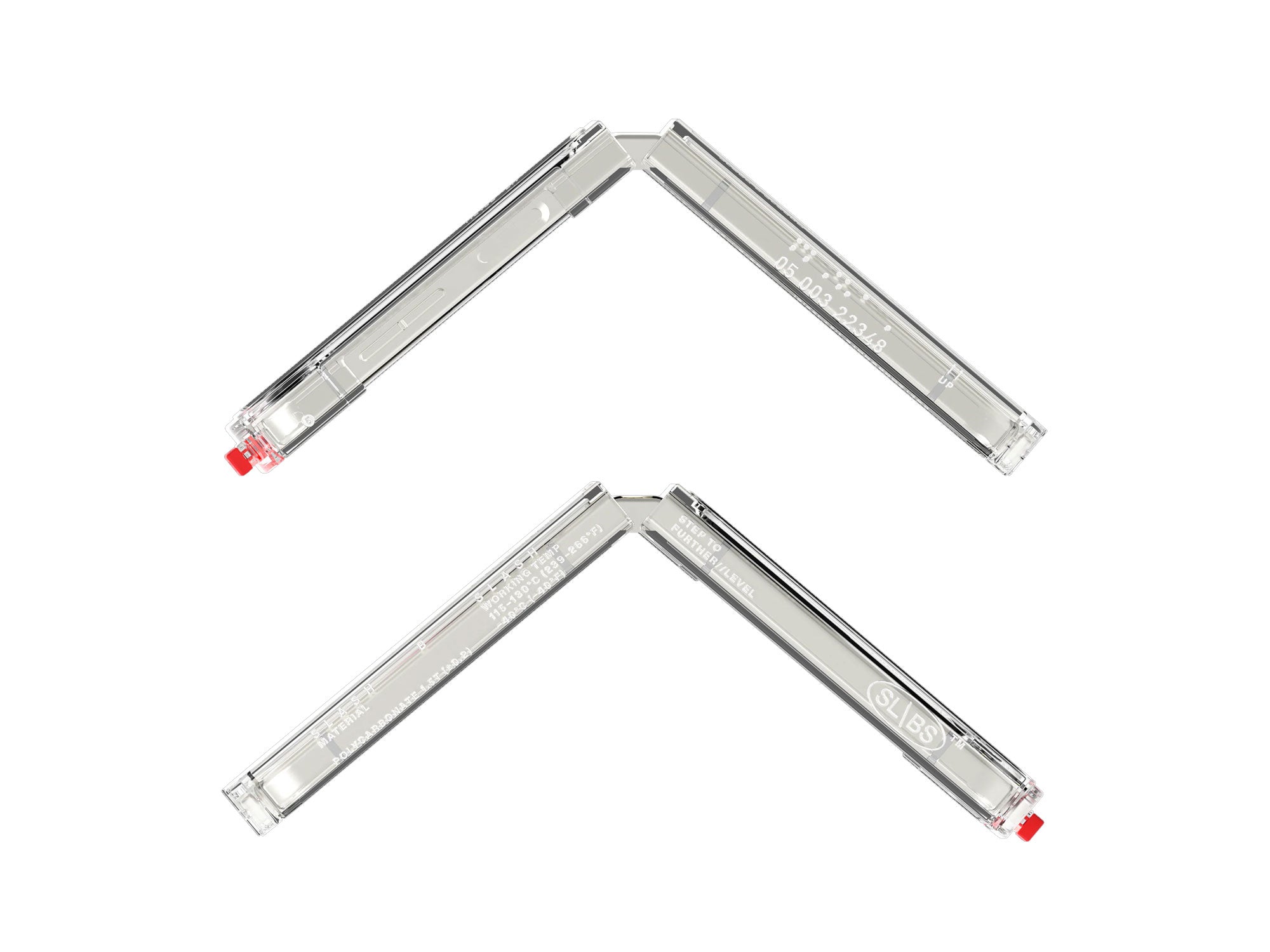 An enlarged image of the red colored tags of two devices closed after attaching the Galaxy Z Flip to the Galaxy Z Flip 5 tag flat case product.